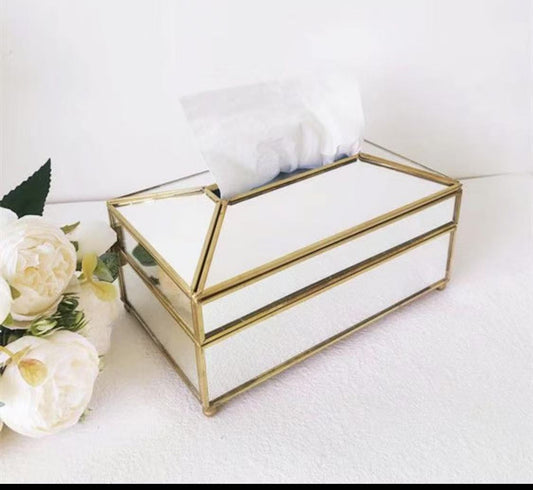 Luxury Mirror Glass Tissue Box – European Style Tray & Holder